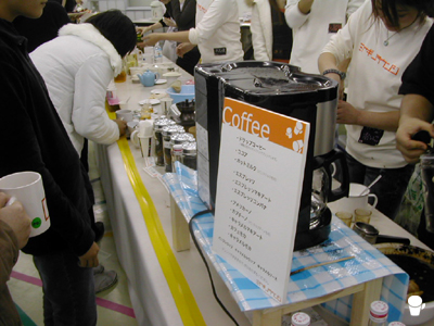 5回生のパティシエによる特製スウィーツ。2回生"バリスタ"のコーヒー。さらに3回生の紅茶や中国茶。卒業生がお菓子をサーブし、飲食を通して交流をはかりました。